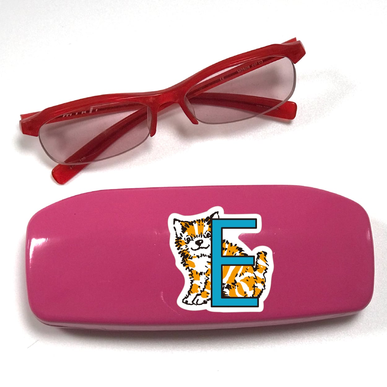 A〜Z の文字と猫が遊ぶ、猫好きさんにはたまらないアルファベットのシールの『E』です